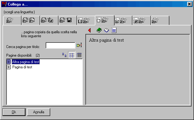 Link verso pagine interne Link verso pagine in un altro ipertesto Link verso indirizzi Internet Link verso un file incorporato Link verso una nuova pagina copiata da un modello Link verso una nuova pagina copiata da un altro ipertesto Link verso una nuova pagina copiata da una pagina Html Link verso una nuova pagina vuota Anteprima della pagina selezionata: qui puoi anche navigare... Lista delle pagine disponibili nel sito